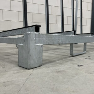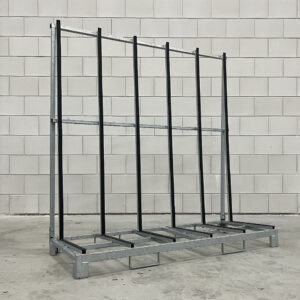 Voor opslag en transport van kozijnen, ramen, panelen, platen, deuren en meer. Deze grotere, enkelzijdige kozijnbok is thermisch verzinkt en beschikt over beschermende rubber profielen. Let op: deze enkelzijdige glasbok dient ten allen tijden worden getransporteerd met de lepels/vorken aan de voor- of achterzijde, in de vorkgeleiders.